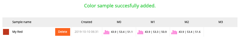 Color samples are stored in palettes and libraries. The operator may create palette using Capture and measure samples - saving them with spectral definitions in the database. The operator is assigned as a creator and time stamp protects data from unauthorized editing.