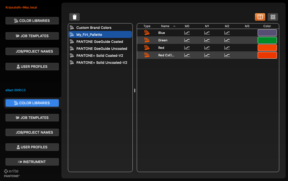 Click on the "Export CxF" button - a CxF file should go to your download folder. This file is eXact compatible (no CxF X-4 compatible) and can be uploaded to your instrument using eXact Manager